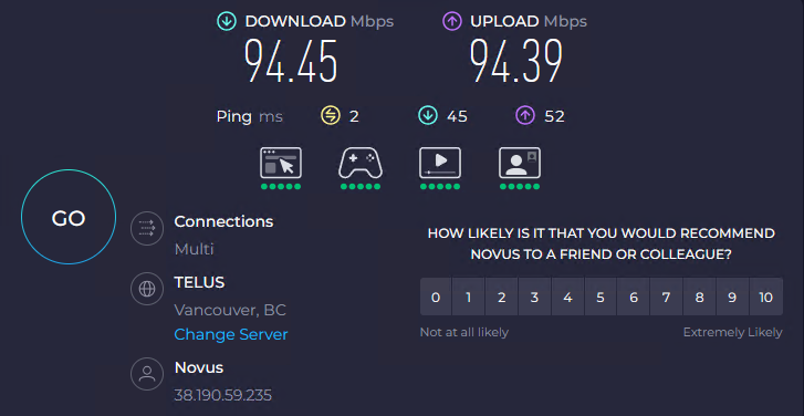 novusnow.ca是一家比较实惠的宽带提供者,我家的宽带是1G对等的宽带,一个月55CAD,(不含税,我住的地方还没有支持2.5G,有一些可惜。)