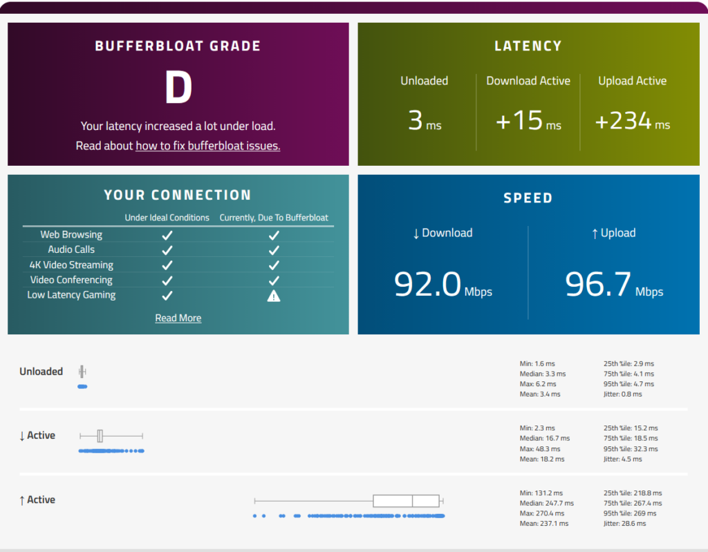 Bufferbloat by Waveform:https://www.waveform.com/tools/bufferbloat